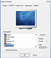 Кликнув правой кнопкой на рабочем столе выбрать пункт «Properties». В открывшемся диалоговом окне выбрать вкладку «Desktop», нажать левой кнопкой на кнопку «Browse» и указать путь и имя подготовленного файла. Нажать кнопку «OK» левой кнопкой мыши.