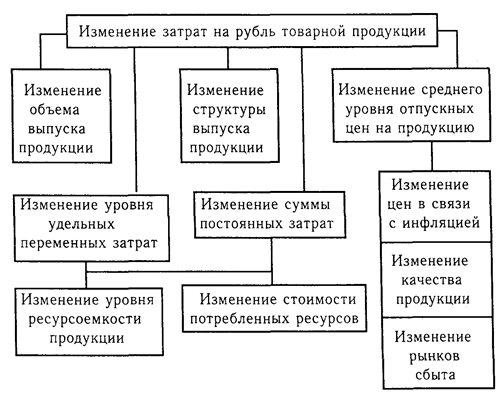 Рис. 1. Взаимосвязь факторов, определяющих уровень затрат на рубль товарной продукции