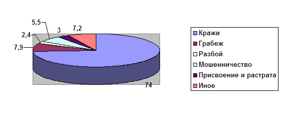 Из этой схемы видно, что самым распространенным преступлением против собственности является кража. Из статистических данных видно, что динамика краж очень похожа на динамику преступлений против собственности вообще.