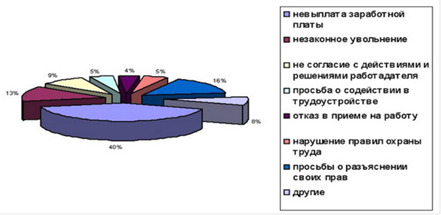 Рисунок 1 – Соотношение отказа в приеме на работу с другими нарушениями трудовых прав по опросам граждан в Российской Федерации [1] Гусов К.Н., Толкунова В.Н. Трудовое право России. -М.: Проспект, 2003. - С. 8. [2] Конституция Российской Федерации. Принята Всенародным голосованием 12 декабря 1993 года [Текст]: [с учетом поправок, внесенных Законами РФ о поправках к Конституции РФ от 30.12.2008 № 6-ФКЗ, от 30.12.2008 № 7-ФКЗ]// Российская газета. – 1993. – 25 декабря. [3] Трудовой кодекс Российской Федерации [Текст]: [Федеральный закон № 197-ФЗ, принят 30.12.2001 ред. от 25.11.2009] // Собрание законодательства РФ. - 2002. - № 1 (ч. 1). - Ст. 3. [4] Исайчева И.А. Энциклопедия трудовых отношений. –М.: Альфа-Пресс, 2007. – С.6 [5] Киселёв М.И. Сравнительное и международное трудовое право. - М., Юрайт, 1999. - С.38. [6] Там же.-С.37. [7] Обзор деятельности федеральных судов общей юрисдикции и мировых судей за первое полугодие 2009 года / Официальный сайт Судебного департамента при Верховном Суде Российской Федерации // Режим доступа http://www.cdep.ru [8] Деменева Н.А. Дискриминация при трудоустройстве: социально-правовой аспект // Юрист. -2007. - № 5. –С.25. [9] Киселёв М.И. Сравнительное и международное трудовое право. - М., Юрайт, 1999. - С.38. [10] Федин В.В. Соотношение принципа свободы труда и права на труд // Lex Russica - научные труды МГЮА. - 2004. - № 2. - С. 411 - 435; Снегирева И.О. Конституционная основа трудового законодательства России // Трудовое право. - 2004.- № 6. - С. 12 - 20; Ершова Е.А. Конституция как источник трудового права // Трудовое право. - 2004. - № 3. - С. 39 - 42. [11] О проверке конституционности положений пункта 2 статьи 278 и статьи 279 Трудового кодекса Российской Федерации и абзаца второго пункта 4 статьи 69 Федерального закона «Об акционерных обществах» в связи с запросом Волховского городского суда Ленинградской области, Октябрьского районного суда города Ставрополя и жалобами ряда граждан. Постановление Конституционного Суда РФ от 15 марта 2005г. № 3-П // Российская газета. – 2005. - 23 марта. – С. [12] Крылатова И.Ю. Некоторые аспекты свободы труда в законодательстве и судебной практике высших судов Российской Федерации // Российский юридический журнал. – 2007. - №2. – С.43-44. [13] Курсова О.А. Проблемы применения правовых норм о гарантиях при заключении трудового договора // Администратор суда. - 2006. - №2. – С.46-47. [14] О проверке конституционности положений части второй статьи 170 и части второй статьи 235 Кодекса законов о труде Российской Федерации и пункта 3 статьи 25 Федерального закона «О профессиональных союзах, их правах и гарантиях деятельности» в связи с запросами Зерноградского районного суда Ростовской области и Центрального районного суда города Кемерово. Постановление Конституционного Суда РФ от 24 января 2002г. № 3-П // СПС «КонсультантПлюс», 2009. [15] Об экономических, социальных и культурных правах [Текст]: [Международный пакт от 16.12.1966] // Ведомости СССР. - 1976. - № 17. - Ст. 291. [16] Крыжан В.А. Правовой обычай и судебная практика как источники трудового права (на фоне интеграции отраслей российского права и интеграции Российской Федерации в мировое сообщество государств): Автореф. дис. ... канд. юрид. наук. - Пермь, 2006. - С 20 - 21. [17] О порядке ведения личных дел лиц, замещающих государственные должности Российской Федерации в порядке назначения и государственные должности федеральной государственной службы[Текст]: [Указ Президента РФ № 640 принят 01.06.1998, ред. от 23.10.2008] // Собрание 
