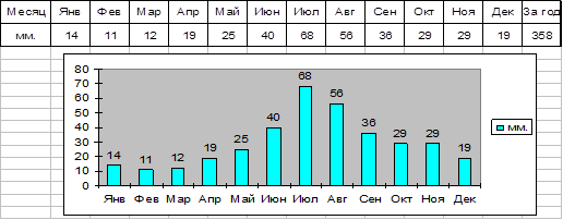 Таблица 2 Среднемесячное и среднегодовое количество осадков приведённое к показателю осодкомера.