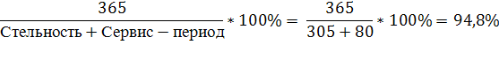 Из формулы следует, что на производительность стада (коровы + нетели) приходится 89,6% молодняка до 1 года. 4.6 Влияние продолжительности сервис-периода и сухостойного периода на выход телят и на молочную продуктивность коровСервис-период – это период от отела коровы до последующего ее оплодотворения. Оптимальная продолжительность сервис-периода молодых коров 2-2,5 месяца. В основном продолжительность лактации обуславливается двумя факторами: длительностью сервис-периода и продолжительностью сухостойного периода. Короткий сервис-период снижает продолжительность лактации, а значит и удой за данную лактацию, т.к. беременность коров, особенно во второй половине стельности, приводит к уменьшению удоев. Сухостойный период – время от окончания лактации стельной коровы до следующего отела. Период сухостоя нормальной продолжительности способствует накоплению в организме коровы запаса, необходимого для дальнейшей лактации; в результате продуктивность будет выше, чем при коротком сухостойном периоде. Однако слишком длинный период сухостоя экономически неоправдан. Учитывая, что от коровы ежегодно нужно получать теленка, необходимо стремиться к тому, чтобы корова доилась 300-310 дней в году и запускалась за 50-60 дней до отела. Прекращение доения коров перед отелом необходимо для восстановления и обновления разрушенных клеток тканей молочной железы, создания в организме животного запаса питательных веществ, а также для нормального внутриутробного формирования плода. Корову нельзя доить до отела даже в том случае, если оно в последние месяцы дает много молока. 4.7 Расчет КВС (коэффициент воспроизводства стада)- стельность – 305 дней; - сервис-период – 80 дней. Для расчета КВС используем формулу: