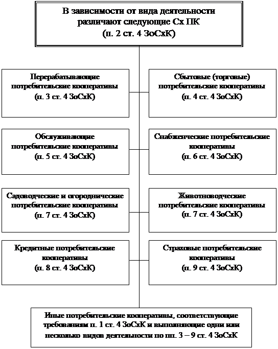 Классификация сельскохозяйственных потребительских кооперативов (Сх ПК)