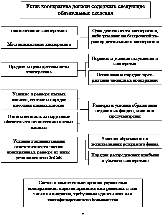 Сведения, обязательные для включения в устав кооператива (ст. 11 ЗоСхК) (окончание)