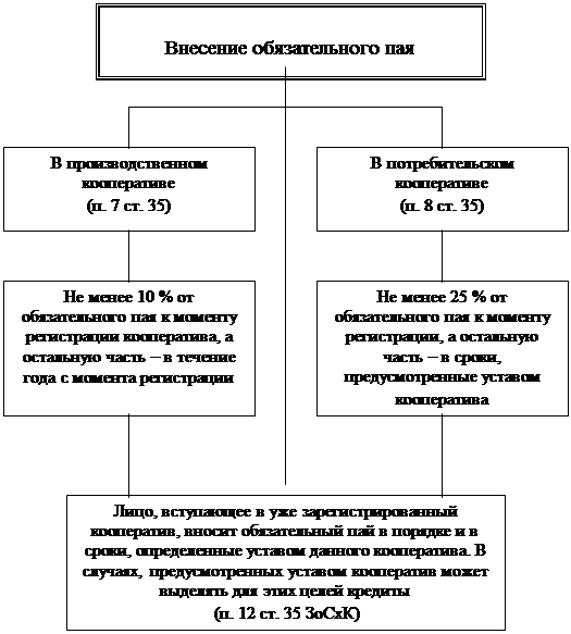 Порядок внесения обязательного пая (пп. 7, 8, 12 ст. 35 ЗоСхК)