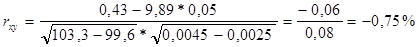 Анализ зависимости урожайности и трудоёмкости зерновых Исходя, из экономического содержания изучаемых признаков приходим к выводу, что урожайность зерновых культур является влияющим признаком (факторным), а их трудоёмкость – зависимым (результативным). Поэтому далее будем использовать следующие обозначения: x – урожайность зерновых, y– трудоёмкость зерновых культур. Установим наличие, направление и тесноту связи между x и y, рассчитав коэффициент корреляции: