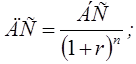 Множитель 1/(1+r )n или 1/(1+r )- n , с помощью которого уравнивается настоящая и будущая стоимость денег, представляет собой т.н. коэффициент дисконтирования. Для его расчета опубликованы специальные дисконтные таблицы, в которых показаны значения коэффициентов дисконтирования в зависимости от временных интервалов и значений нормы (процента) дисконта. Для всех доходов (Д), получаемых за период эксплуатации реализованного инвестиционного проекта, определяют их текущую дисконтированную стоимость, суммируя доходы всех лет, т.е. используют формулу: