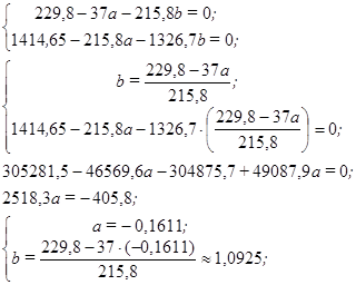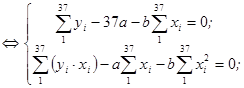 Следовательно, гипотеза о линейной модели связи принимается. Для нахождения параметров a иb воспользуемся методом наименьших квадратов: