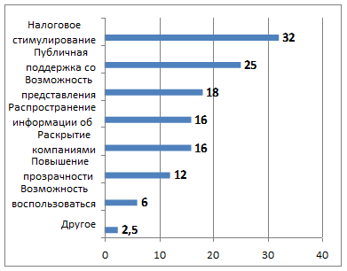 Рис. 20. Какие действия ваша организация намерена предпринять в первую очередь для улучшения (сохранения) своего финансового положения в ближайший год? Возможно, кризис даст импульс к более активному развитию социального предпринимательства в России. В ситуации кризиса со стороны третьего сектора вырос и его запрос к государству. Такая позиция вполне объяснима и рациональна: в условиях кризиса наиболее важным (критическим) ресурсом являются деньги, и государство оказалось едва ли не единственным источником, у которого они остались. В экспертном сообществе довольно распространена точка зрения, что государственная поддержка НКО способствует развитию у некоммерческих организаций иждивенческих настроений и тормозит их развитие. Во многом это связано с представлениями о том, что третий сектор – это сфера общественных интересов, которая должна быть независима от государства. Данные представления совсем не популярны среди самих руководителей НКО. Наоборот, представители третьего сектора видят в государственной поддержке дополнительные стимулы для своего развития (Рис.21).