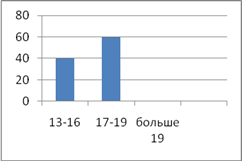 Соответственно, респонденты распределились: 40% девушек в возрасте от 13 до 16 лет и 60% девушек в возрасте от 17 до 19 лет. Остальные респонденты были мужского пола: 44% парней в возрасте от 13 до 16 лет и 56% парней в возрасте от 17 до 19 дет. Уровень образования:
