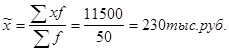 Определить: С вероятностью 0,954 предельную ошибку выборочной средней и границы, в которых будет находиться среднегодовая стоимость основных производственных фондов всех предприятий генеральной совокупности. С вероятностью 0,997 предельную ошибку выборки при определении доли и границы, в которых будет находиться удельный вес предприятий со стоимостью основных производственных фондов свыше 200 тыс. рублей. Объем выборки при условии, что предельная ошибка выборки при определении среднегодовой стоимости основных производственных фондов (с вероятностью 0,954) была бы не более 20 тыс. руб. Объем выборки при условии, что предельная ошибка доли (с вероятностью 0,997) была бы не более 10% Решение: Для определения границ генеральной средней необходимо вычислить среднюю выборочную Таб.6.1 Рабочая таблица