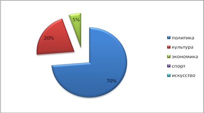 Среди ответов на вопрос о причинах, препятствующих самореализации в сфере досуга, преобладающими вариантами были «состояние здоровья» и «поздно проявлять творческую активность». Можно сделать вывод, что у опрошенных, давших такие ответы сложился прочный психологический стереотип отчужденности и они не желают затрачивать усилия на его преодоление. 9. Какие события, происходящие в стране и мире, Вас интересуют больше?
