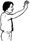 Рис.11. Два человека из небольшого города месте, где люди выросли. Тем, кто вырос в редконаселенных сельских местностях, требуется более просторное личное пространство, чем тем, кто воспитывался в густонаселенных столичных городах. По тому, как человек протягивает руку для рукопожатия можно судить, проживает ли он в крупном городе или в отдаленной сельской местности. У городских жителей их личная "воздушная оболочка" составляет 46 см, и именно на столько сантиметров протягивается кисть руки от тела при рукопожатии (рис10). В таком случае руки собеседников встречаются на нейтральной территории. Люди, выросшие в районном городе, где плотность населения невысокая, могут иметь "воздушную оболочку" до 1,2 метра в радиусе или более, и именно на этом расстоянии находится кисть руки от тела, когда сельские жители здороваются за руку (рис.11). Сельские жители обычно стоят прочно на земле и наклоняются навстречу вашему рукопожатию, в то время как городской житель сделает шаг вперед при рукопожатии. Люди, выросшие в отдаленных или малонаселенных сельских районах, обычно имеют очень большие потребности в личном пространстве, достигающем 9 метров. Эти люди предпочитают не здороваться за руку, а лучше на расстоянии помахать друг другу рукой (рис. 12). Городские агенты по продаже считают, что знание этих особенностей имеет огромные значение для успеха торговых операций с фермерами в малонаселенной сельской местности. Учитывая, что такой фермер имеет "воздушную оболочку" от 92 см до 1,8 метра и более, рукопожатие с ним будет расцениваться как территориальное нарушение, на которое фермер отреагирует отрицательно, и будет занимать оборонную позицию. Преуспевающие агенты по продаже почти единогласно заявляют, что самые благоприятные условия для переговоров о купле-продаже складываются в том случае, когда они приветствуют жителя небольшого сельского городка широким рукопожатием, а фермера из глубинки взмахом руки.