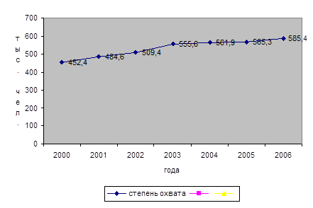 Рисунок 2.4 - Охват населения РТ организационными формами физкультуры и спорта в 2000-2006 гг. Развитие массового спорта осуществляется совместно физкультурно-спортивными организациями и объединениями Республики Татарстан: ФСО «Уныш», ФСО «Спартак-Татарстан», ФСО инвалидов, МФСО «Буревестник». В целях социальной адаптации инвалидов, их реабилитации средствами физической культуры и спорта ФСО инвалидов Республики Татарстан проводит целенаправленную физкультурно-оздоровительную работу в этом направлении. Спортсмены-инвалиды принимали участие во всероссийских и международных соревнованиях по различным видам спорта. Так, на Международном лично-командном шахматно-шашечном фестивале, проходившем с 23 по 31 марта 2006 г. в г. Самаре, команда детей-инвалидов школы-интерната №4 г. Казани заняла 2 место. Ирина Полякова на IХ Паралимпийских играх в Турине завоевала золото. В 2006 году ей присвоено звание «Заслуженный мастер спорта России». Ольга Федорова на Чемпионате Европы по плаванию, прошедшем в г. Солоники (Афины) завоевала 7 медалей, 6 из которых — золотые. На Чемпионате России (г. Зеленоград) она завоевала 8 золотых медалей [21, c. 43]. Министерством по делам молодежи, спорту и туризму Республики Татарстан в 2006 году выделены дополнительно 13 ставок тренеров-преподавателей по месту жительства для работы с инвалидами. Ставки распределены по городам и районам республики. Молодежное физкультурно-спортивное общество «Буревестник» объединяет студентов 26 ВУЗов и 9 филиалов. Число регулярно занимающихся физической культурой и спортом составляет 17,1% от общего числа студентов ВУЗов. Совместно с МФСО «Буревестник» проведены Первенства и Чемпионаты Республики Татарстан по лыжным гонкам, татаро-башкирской борьбе, волейболу, пешеходному туризму, мини-футболу, волейболу, легкоатлетическому кроссу, настольному теннису, баскетболу. В Спартакиаде по общей физической подготовке среди. первокурсников ВУЗов и ССУЗов Казанской зоны приняли участие 315 студентов. В прошедшей по 7 видам спорта Спартакиаде среди ССУЗов приняли участие более 2 тысяч студентов из 54 учебных заведений. В Спартакиаде профессорско-преподавательского состава высших учебных заведений Республики Татарстан приняли участие 13 команд с общим охватом более 500 человек [22, c. 97]. Студенты Республики Татарстан активно участвуют в проводимых российских и международных соревнованиях, многие из них являются членами сборных команд России по различным видам спорта. В республике развивается 78 видов спорта, в т.ч. 36 — олимпийские. Среди них наиболее популярны: баскетбол, волейбол, футбол, хоккей, бокс, дзюдо, вольная борьба, академическая гребля, легкая атлетика, лыжные гонки, настольный теннис, плавание, спортивная и художественная гимнастика, определенны как приоритетные. Для их поддержки в республике разрабатываются целевые программы. Так по Программе развития хоккея, предусматривающей систему мер более интенсивного развития этого вида спорта, в республике уже построены более 50 дворовых хоккейных комплексов [22, c. 97]. Стало традиционным проведение на земле Татарстана крупнейших всероссийских мировых спортивных соревнований. Так, в прошедшем году всего проведено 530 спортивных мероприятия в т.ч. 127 российских и международных. Наиболее значимые крупные международные соревнования 2006 года: - Фи