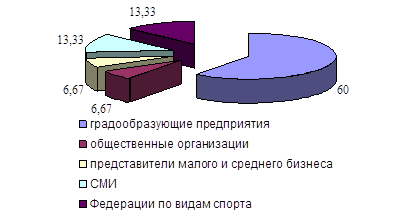 Рис.16 - Мнение респондентов о соответствии организации физкультурно-оздоровительной работы с молодежью существующим нормам Кроме того, отмечается, что наряду с муниципальными органами управления физической культурой и спортом, реальную заботу об улучшении оздоровительной работы, развития массового спорта в Нижнекамском муниципальном районе проявляют градообразующие предприятия (рисунок 17). Данное обстоятельство свидетельствует о том, что со стороны государства уделяется незначительное внимание развитию сферы физической культуры и спорта, что может оцениваться отрицательно.