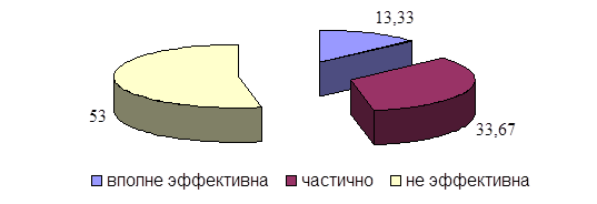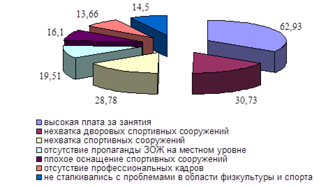 Рисунок 24 - Мнение респондентов об эффективности специальной программы по организации оздоровительной работы среди молодежи Далее, наиболее острыми опрошенные считают следующие проблемы: высокая плата за занятия (62,93%), нехватка дворовых спортивных сооружений (30,73%), нехватка спортивных сооружений (28,78%), а также отсутствие пропаганды здорового образа жизни на местном уровне (19,51%), плохое оснащение спортивных сооружений (16,1%) и отсутствие профессиональных кадров (13,66%) 14,5% респондентов не сталкивались с проблемами в области физической культуры и спорта (рисунок 25).
