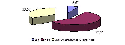 Рис.20 - Мнение респондентов о пропорциональности расходования денежных средств между "элитными" видами спорта (хоккей, футбол) и массовым спортом С целью выявления наиболее эффективных мер по вовлечению молодежи в занятия спортом и физической культурой было исследовано мнение о роли средств массовой информации в данной сфере. Респондентами было отмечено, что пропаганда здорового образа жизни представлена в СМИ достаточно полно, но она не является эффективным средством вовлечения молодежи Нижнекамска к занятию спортом и физической культурой (рисунки 21 и 22).