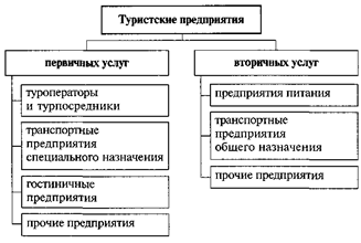 Рис.7. Классификация туристских предприятий В основе приведенной классификации лежат такие признаки, как общность спроса клиентов, функциональная роль предприятий в системе туризма, объем и удельный вес предлагаемых ими туристских услуг. Рассмотрим каждый тип туристских предприятий. 3.1 Туристические предприятия первичных услуг Туроператоры и турпосредники Туроператор — туристское предприятие, которое комбинирует свои собственные и чужие услуги в новый — самостоятельный туристский продукт. Этот новый продукт называется паушальным (комплексным) туром. Туроператор предлагает клиенту комплексный тур от своего имени, на свой риск и за свой счет. Паушальный (комплексный) тур — это пакет услуг из нескольких составляющих. Туроператор составляет этот пакет предварительно для еще неизвестного ему потребителя и предлагает его за одну общую стоимость. Туроператор собирает в пакет дополняющие друг друга услуги, которые производятся чаще всего разными предприятиями (исполнителями услуг). Результат комбинирования — получение нового продукта. В этот продукт входят также услуги турпосредника по консультированию и сбыту. Слово паушальный указывает по крайней мере на два признака: комплексный тур, представляющий из себя пакет, который состоит из нескольких услуг и продается за общую стоимость; тур является серийным, готовым и самостоятельным продуктом. При этом всем потребителям предлагаются одинаковые услуги. Паушальный тур предлагается постоянно и, как правило, в течение длительного периода времени (например, туроператор предлагает с апреля по сентябрь каждую субботу путешествие в Париж). Всех туроператоров, работающих на туристском рынке, можно классифицировать по их размерам, региону действия, ширине и глубине программы и экономическим целям. По размерам различаются крупные, средние и мелкие туроператоры. К крупным туроператорам относятся предприятия, услугами которых пользуется более 100 тысяч человек в год, а их оборот составляет около 35 млн.долларов. В группу средних туроператоров входят предприятия с клиентурой от 30 до 100 тысяч человек в год. Чаще всего они имеют узкую специализацию деятельности: заполняют только одну из рыночных ниш (специализация на определенном туре — например, образовательные туры; специализация на определенном регионе — например, Карпаты). К категории мелких туроператоров относятся самые разнообразные типы предприятий: специализирующиеся на походном или молодежном туризме, занимающиеся организацией путешествий, автобусные предприятия, одно из направлений деятельности которых — перевозка туристских групп. По региону деятельности различаются международные, межрегиональные, региональные и местные туроператоры. Международных туроператоров мало. Лишь немногие крупные туроператоры предлагают свои продукты в нескольких странах. Чаще всего они открывают за границей свои филиалы или сотрудничают с национальными предприятиями. К группе межрегиональных туроператоров следует отнести предприятия, обслуживающие большую территорию (несколько регионов). Региональные туроператоры предлагают свои услуги только на определенной географической территории, но по обороту и количеству туристов их можно отнести к крупным туроператорам. Местные туроператоры работают в радиусе досягаемости мест
