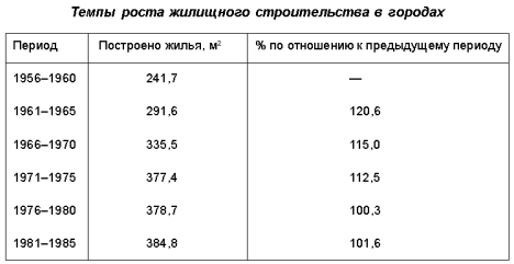 Адаптация выходцев из деревень и поселков к городскому образу жизни, городской культуре часто проходила непросто. С другой стороны, горожане (зачастую сами — дети выходцев из деревни) были недовольны наплывом «лимитчиков», видя в них конкурентов в очереди на жилплощадь. Острота жилищной проблемы теперь, конечно, не шла ни в какое сравнение с послевоенным периодом, однако очереди на жилье не уменьшались. В начале 1980-х гг. 27 млн. горожан ютились в общежитиях, бараках, полуподвалах или снимали комнаты и углы в частном секторе. Отдельная квартира тоже не всегда являлась решением вопроса: три миллиона семей, состоявших из четырех и более человек, жили в однокомнатных квартирах. В начале 1980-х гг. в СССР приходилось 15 м2 общей площади жилья на человека. Соответствующий показатель во Франции составлял 30 м2 , в ФРГ — 40 м2 , в США — 50 м2 . Тем не менее в США ежегодно вводилось в строй вдвое больше жилья, чем в СССР — 260 млн. м2 против 130 млн. м2 . Правда, на оплату жилья и коммунальных услуг в СССР уходило лишь 6% среднего семейного бюджета, а в США — 26,6%. Советский горожанин для оплаты жилья трудился в среднем 18,2 часа, американец — 45 часов. Но оплата 1 м2 жилья требовала в СССР работы в течение 1,23 часа, а в США — 0,87 часа. Система образованияВследствие роста городского населения общий уровень образования формально возрос. В течение 1970-х гг. удельный вес людей, имеющих полное и неполное среднее образование, среди занятых в народном хозяйстве увеличился с 65 до 80%. В 1975 г. было введено обязательное 10-летнее образование. Если в середине 1950-х гг. полную среднюю школу закончили менее 40% детей, в конце 1960-х гг. — около 70%, то в 1976 г. — 97%. Однако переход к обязательному среднему образованию породил множество проблем. Специализация обучения, даже в старших классах, практически не допускалась. Только немногочисленные математические и языковые школы давали углубленные знания по профилирующим предметам, но за счет дополнительной нагрузки на учеников. Учебные программы, особенно по техническим предметам, были перегружены. К тому же один день еженедельно старшеклассники обучались рабочим специальностям в учебно-производственных комбинатах (УПК). Эффективность такого обучения была низка, а само оно, зачастую, формально: профессию, соответствующую профилю обучения в УПК, выбирали лишь 17% выпускников. Для овладения многими рабочими профессиями в городе и, тем более, на селе знания в объеме средней школы не требовались. Но все выпускники восьмилетки, в том числе и те, кто решительно не желал учиться, должны были поступать в старшие классы. Правда, наряду со школой среднее образование давали профессионально-технические училища (ПТУ). В конце 1970-х гг. в школах ежегодно получали среднее образование 3 млн чел., а в ПТУ — свыше 500 тыс. Однако основное внимание в ПТУ уделялось профессиональному обучению, а общеобразовательные предметы преподавались «облегченно». Поступали туда, как правило, самые слабые ученики. Престиж ПТУ был крайне низок, а потому большинство родителей стремились, чтобы их дети оканчивали десятый класс в школе. Отчислить неуспевающего школа не могла. Учителям приходилось переводить из класса в класс заведомых двоечников, действуя по системе «три пишем — два в уме». Школа постоянно находилась под контролем чиновников различных ведомств — от органов просвеще
