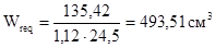Q1 = 121,25 кН Wreq = M/(Rу ∙ γc )