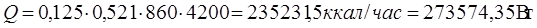 где, ΔТ - Охлаждение теплоносителя на - 0,125°С/час.