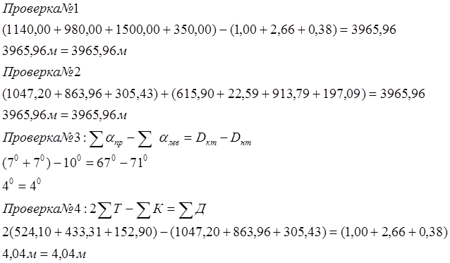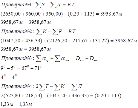 4. Проектирование ВАРИАНТОВ ТРАССЫ 4.1. Нанесение вариантов трассы, их объяснение и обоснование Трассирование производится по планкарте масштаба 1:10000 и сечением горизонталей через 2,5 м. На планкарту нанесены положение начала и конца трассы. Воздушная линия, соединяющая участки трассы, проходит из юго-западного угла карты в северо-восточный. Вдоль этой линии и спроектированы два варианта трассы. Анализируя район проложения трассы по кратчайшему направлению между указанными пунктами общее проложение трассы по воздушной линии составляет 3230 м. · Первый вариант трассы спроектирован по косогорному варианту, что обеспечивает ему небольшое отклонение от воздушной линии. В начале трасса идет на подъем, а затем - на спуск. С шестого по двадцатый ПК- продолжительный спуск. В середине двадцать шестого пикета трасса поворачивает налево, на угол α=3° с вершиной угла поворота на ПК26+50,00 и радиусом кривой R=20000 м для того, чтобы обойти относительно резкие перепады отметок. Заканчивая поворот на пикете 31+73,40 , трасса поворачивает направо в конце тридцать третьего пикета на угол α=10° с вершиной угла поворота на ПК36+09,80 и радиусом кривой R=2500 м для стыковки с началом другого участка трассы. · Второй вариант трассы спроектирован по долинному варианту, что обеспечивает ему сравнительно небольшой перепад высот, большее отклонение от воздушной линии. Поэтому вначале шестого пикета трасса начинает поворот направо, на угол α=6° с вершиной угла поворота на ПК 11+40,00 и радиусом кривой R=10000 м. При этом трасса проходит с небольшими подъемами и спусками. После этоготрасса начинает плавный подъем, поворачивает налево в конце шестнадцатого пикета, на угол α=11° с вершиной угла поворота на ПК 21+19,00 и радиусом кривой R=4500 м. На участке с двадцать первого по двадцать пятый ПК дорога проходит вдоль одной горизонтали. В середине тридцать четвертого пикета трасса поворачивает направо, на угол α=7° с вершиной угла поворота на ПК 36+16,34 и радиусом кривой R=2500 м. продолжая спуск и стыкуясь с началом другого участка трассы. 4.2. Составление ведомости углов поворота Пикетажное положение начала и конча дороги, определяется по формулам из источника (стр. 48–51 [5]):