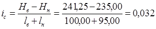 ![]() где lj – длиныi -го участка тальвега, соответственно равные 75,00 м, 45,00 м, 30,00 м, 50,00 м, 30,00 м, а отметки, м: начало 1-го участка – 237,50, конец 1-го участка – 240,00, начало 2-го участка – 240,00, конец 2-го участка – 242,50, начало 3-го участка – 242,50, конец 3-го участка – 245,00, начало 4-го участка – 245,00, конец 4-го участка – 247,50, начало 5-го участка – 247,50, конец 5-го участка – 248,50. Средний уклон главного лога определяется по формуле (4.2[7]):