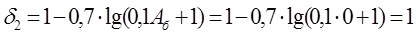 где Ал – залесенность водосбора, 100%; δ2 – коэффициент учитывающий снижение максимальных расходов в заболоченных бассейнах определяемый по формуле [7, ст.19]: