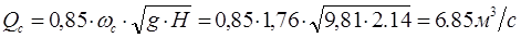 где: Q – расчетный расход стока, равный 52,97 м3 /с; m – коэффициент расхода, равный 0,35; g – ускорение усвободного падения, равное 9,81 м/с2 ; Н – подпор, принимаем равный 1,50 м. Принимаем ближайшее стандартное значение b1 =20,00 м. Находим новое уточненное значение напора, по формуле (VI.10) [6]: Н1