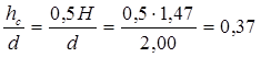 Этому значению расхода в табл. 3 (приложение. [9]) соответствует ближайшее большее значение Н, равное 1,47 м. Отношение hc / d равно: