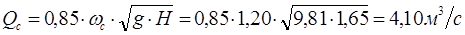 где: Н – напор воды перед мостом, равное 1,5 м.;