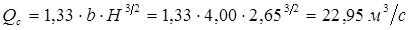 где b – ширина трубы взятая из таблицы 5 [9] Методом подбора, применяя различные значения величин b и Н определяем пропускную способность трубы: Qр = 22,01 м3 /с. Н=2,65 м b=4,00 м