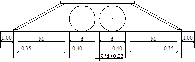+3.66+0.40)+2∙2.00+1·(2·0.16+0.33)=15.47 м где Вукр – ширина укрепления; М – длина оголовка, равная, для труб диаметром 2,00м –3,66м; δ – толщина звена оголовка, равная 0,16м