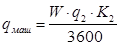 W - количество машин или мощность двигателя внутреннего сгорания; q2 - норма удельного расхода воды на соответствующий измеритель; К2 -коэффициент часовой неравномерности потребления воды (К2 = 1,2); Расход на хозяйственно-питьевые нужды, (л/с), определяем по формуле: