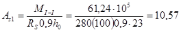 N1e / N = 647,34/874,87 = 0,74; jв = 0,902; jr = 0,91 Тогда j = 0,902 + 2(0,91 – 0,902)·0,21 = 0,905. Подставляем полученные значения: 874870 £ 0,905[1980·400 + 36500·4,52] = 896067 Н – условие удовлетворяется. Определяем