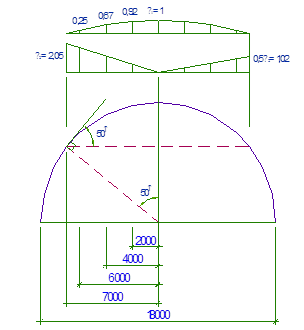 Таким образом, устойчивость арки обеспечена при раскреплении внутренней кромки в промежутке между пятой и коньком через 4,5 м.