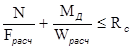 N/(Fбр φRс ) + [Mд /(Wбр φм Rи )]n ≤ 1