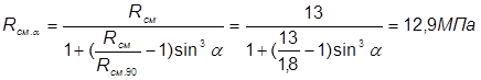 - расчетное сопротивление древесины смятию под углом к волокнам.