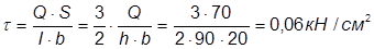 Проверку сечения арки на скалывание по клеевому шву производим на максимальную поперечную силу Q= 73,9 кН по формуле Журавского