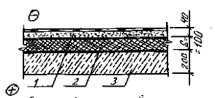 1. Цементно-песчаная стяжка: плотность g=1800 кг/м3 , коэффициент теплопроводности lА =0,76Вт/(м. 0 С). 2. Утеплитель – жесткие минераловатные плиты: плотность g=200 кг/м3 , коэффициент теплопроводности lА =0,076Вт/(м. 0 С) 3. Железобетонная монолитная плита: плотность g=2500 кг/м3 , коэффициент теплопроводности lА =1,92Вт/(м. 0 С). Сопротивление теплопередаче: R0 =Rв +Rж/б +Rутеп +Rст +Rн =R0 треб ; 1/8,7+0,2/1,92+dутеп /0,076+0,04/0,76+1/23=2, откуда dутеп =0,1 м = 100 мм. Перекрытие первого этажа . Теплотехнические характеристики материалов: