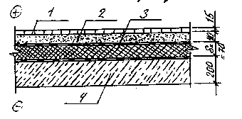 Рисунок 6.3 – Схема укладки штучного паркета Укладка паркета в прямую елочку начинается с раскладки поперек помещения и перпендикулярно свету контрольной змейки 1. Змейка укладывается из левых 2 и правых 4 клепок так, чтобы с одной стороны угла шел только гребень, а другой – только паз. Основное назначение змейки – определить рациональное местоположение елок паркета. Далее ориентируясь по среднему звену змейки, вдоль помещения натягивают шнур. По шнуру укладывают два смежных ряда клепок, что составляет маячную елку 5. После укладки маячных рядов их расклинивают со стеной, препятствуя сдвижке отдельных клепок при закреплении к основанию клепок смежных рядов. Террацовые полы. Покрытие выполняется двухслойным с нижним слоем толщиной 40 мм из цементно-песчаного раствора и лицевого слоя толщиной 20 мм. Подвижная бетонная смесь укладывается по направляющим, виброуплотняется и ваккуумируется с использованием гибких матов. После снятия ваккуум-матов на поверхность наносят мраморную крошку слоем 15 – 20 мм. Затем крошка утапливается в бетон. Заглаживание производится машиной СО – 170. 6.4 Совмещение строительных, монтажных и специальных строительных работОдновременное выполнение на строительной площадке монтажных, строительных и специальных строительных работ (при обеспечении фронтов работ) допускается в соответствии с календарным графиком производства работ. При этом на участке или захватке, где ведутся строительно-монтажные работы, не допускается выполнение других работ и нахождение людей под монтируемыми элементами конструкций до установки их в проектное положение и закрепления. 6.5 Выполнение работ в зимних условияхПри выполнении строительно-монтажных работ в зимнее время необходимо учитывать следующее: основания котлованов и траншей должны предохраняться от промерзания; котлованы, разработанные в зимнее время, при наступлении оттепели должны быть осмотрены и приняты меры по обеспечению устойчивости откосов; обратную засыпку пазух производить талым грунтом; при бетонировании конструкций применять электропрогрев бетона непосредственно в конструкции; каменную кладку необходимо вести в соответствии с указаниями в проекте и СНиП 3.03.01–87 на производство каменных работ в зимнее время; в период оттаивания и твердения раствора в каменных конструкциях, выполненных способом замораживания, следует установить постоянное наблюдение за ними, а территорию вдоль стен оградить на расстояние равное высоте стен; монтаж сборных ж. б. и металлических конструкций производить после очистки от снега и наледи конструкций и монтажных площадок; специальные работы внутри жилых домов со встроенно – пристроенными помещениями выполняются в закрытых помещениях с обеспечением необходимой плюсовой температуры; подъездные пути, пешеходные дорожки на территории строительной площадки необходимо регулярно очищать от снега, наледи и посыпать песком или золой; на объекте предусматривается работа в течение календарного периода, исключая ее сезонность. Введение в бетонную смесь противоморозных добавок понижает температуру замерзания жидкой фазы, что обеспечивает твердение бетона при отрицательных температурах. В качестве таких добавок используют: хлорид кальция (ХК) с хлоридом натрия (ХН), Когда темпы набора прочности бетона с противомо