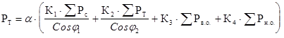 соответственно коэффициенты мощности зависящие от загрузки силовых и технологических потребностей; принимаются К1 , К2 , К3 , К 4 - соответственно коэффициенты спросов, учитывающие несовпадение нагрузок потребителей и принимаемые: К 1 = 0, 5; К2 = 0,4; К3 = 0,8; К4 = 1,0.
