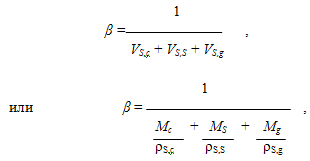 β = 1/(360/1290+475/1510+1282/1430) = 0,67. Результаты расчета начального состава бетона