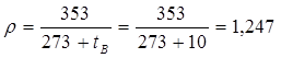 где dВ и dН - влагосодержание внутреннего и наружного воздуха, г /кг с. в.; dН - при наружной температуре минус 26°С принимаем равной 0,4 г/кг с. в.; dВ - определяем при помощи i-d диаграммы по принятой нормативной температуре воздуха в помещении равной 10°С и допустимой влажности 70%. Для данного вида животных (телята), dB =5,5 г/кг с. в.; ρ - плотность воздуха при внутренней температуре, кг /м3 :