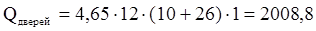 4) Рассчитываем теплоту теряемую через двери коэффициент теплопередачи через двери (одинарные): Теплота, теряемая через двери: