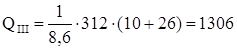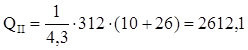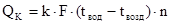 Площадь стен: Fстен = 78·4·2 - 12 = 612 м2 . По формуле (7) рассчитываем теплоту, теряемую через стены: