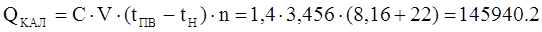 Где g- масса одного животного (теленка), кг . Примем равным 150 кг ; m- количество животных; Н - нормативный воздухообмен на 100 кг живой массы телят, м3 /с·100 кг . Согласно справочным данным примем Н=0,0055 м3 /с·100 кг .