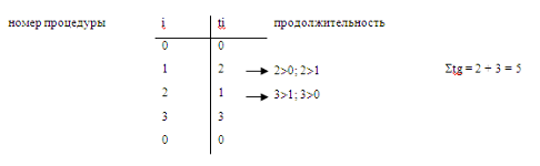 где Stg – суммарная продолжительность процедур, имеющих большие длительности, чем смежные с ними процедуры.