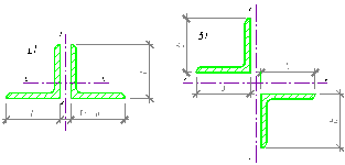 Рисунок 13. Сечения элементов легких ферм – равнополочные уголки (б – стержень 6-7, а- остальные стержни фермы)