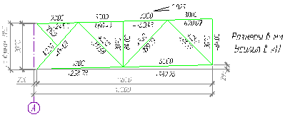 Расчетные усилия в стержнях фермы